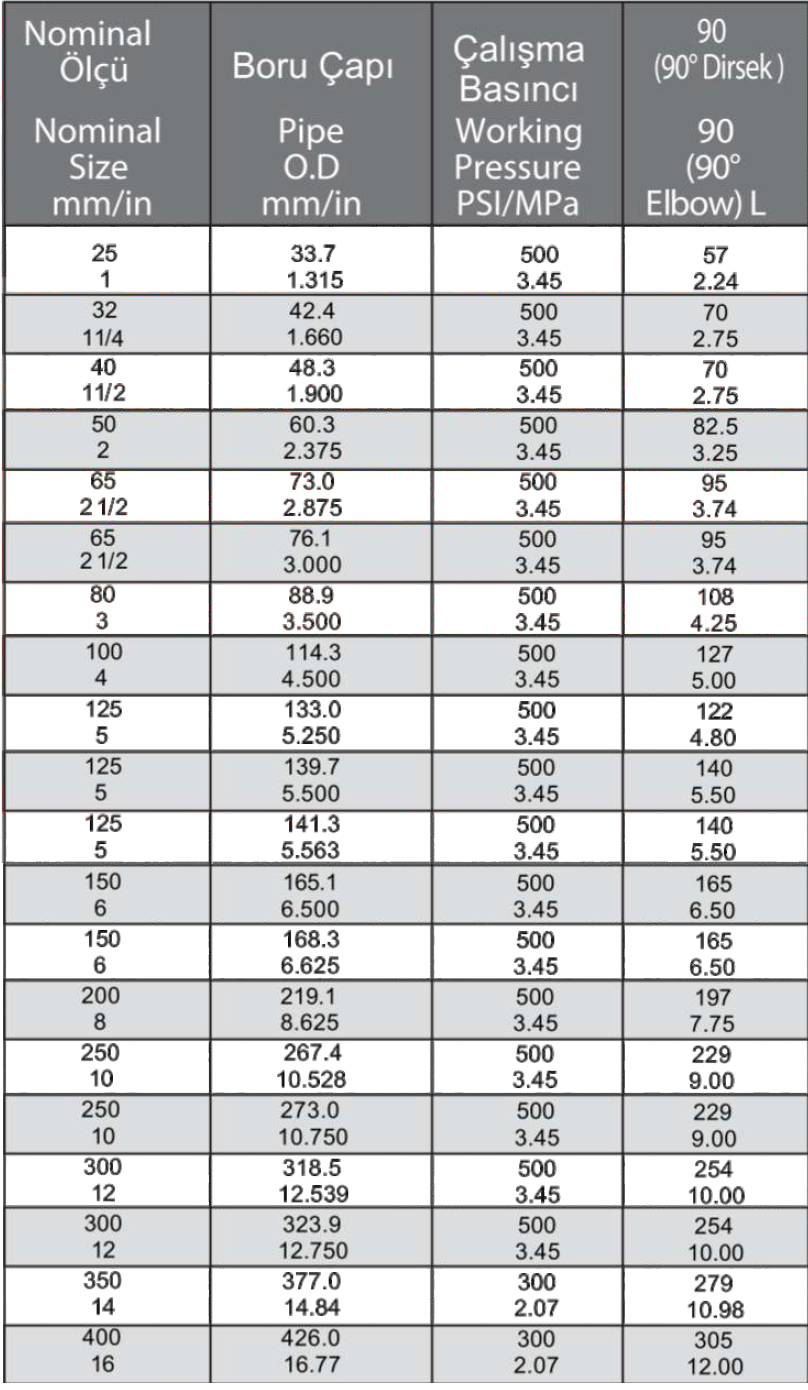 Yivli sabit ve esnek kaplin bağlantısı na uygun olarak üretilen bağlantı elemanlarıdır. Boru hattı üzerinde 90, 45 ve 22.5 derecelik dönüşlerin yapılmasında kaynak yada dişli uygulamaya pratik ve güvenilir bir alternatiftir. Yangın tesisatı, endüstriyel borulama ve yağsız hava hatlarında kullanıma uygundur.