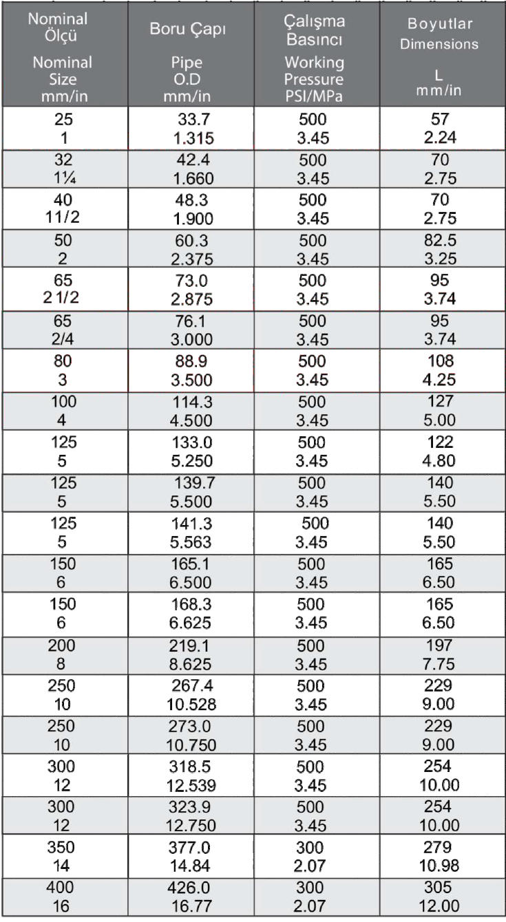 Yivli sabit ve esnek kaplin bağlantısı na uygun olarak üretilen bağlantı elemanıdır. Boru hattı üzerinde daha küçük çaplara branşman alınması ve geçiş yapılması gerekli durumlarda kaynak yada dişli uygulamaya pratik ve güvenilir bir alternatiftir. Yangın tesisatı, endüstriyel borulama ve yağsız hava hatlarında kullanıma uygundur.
